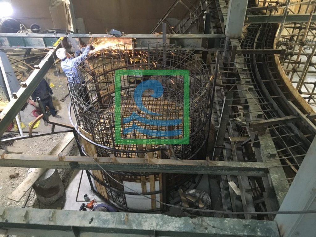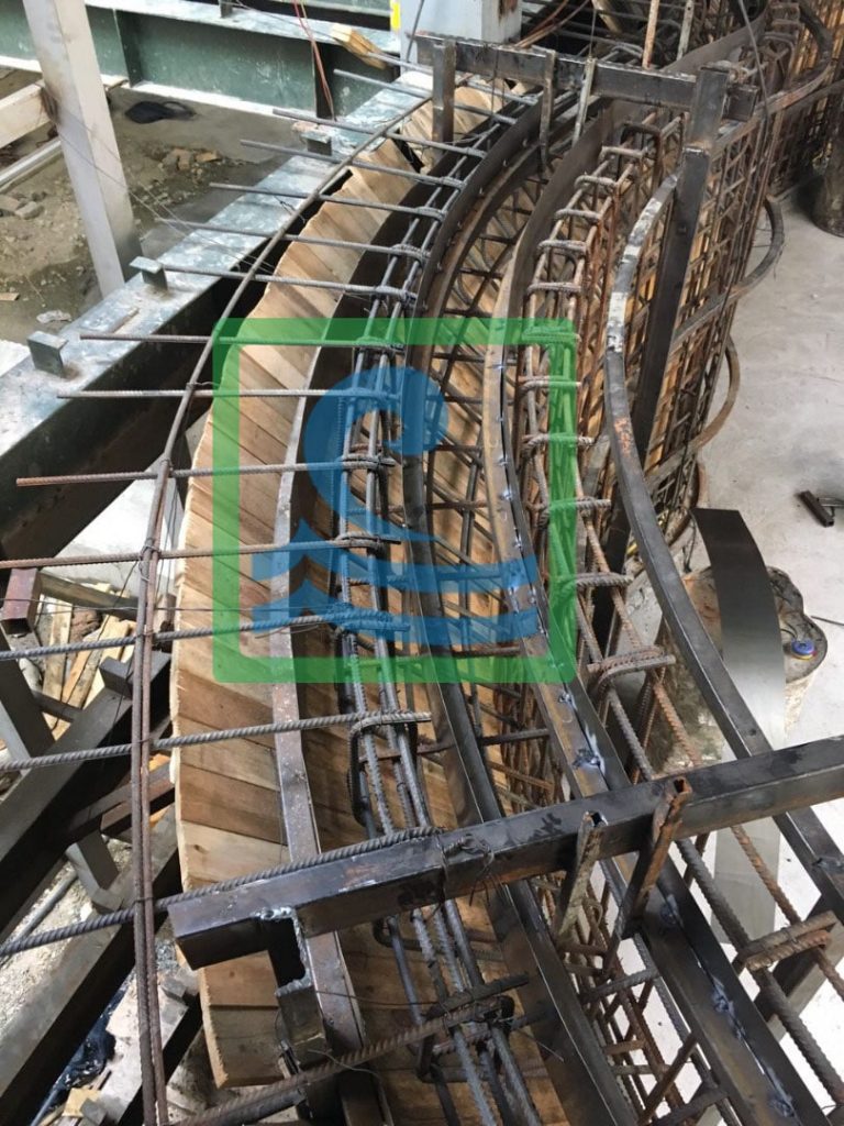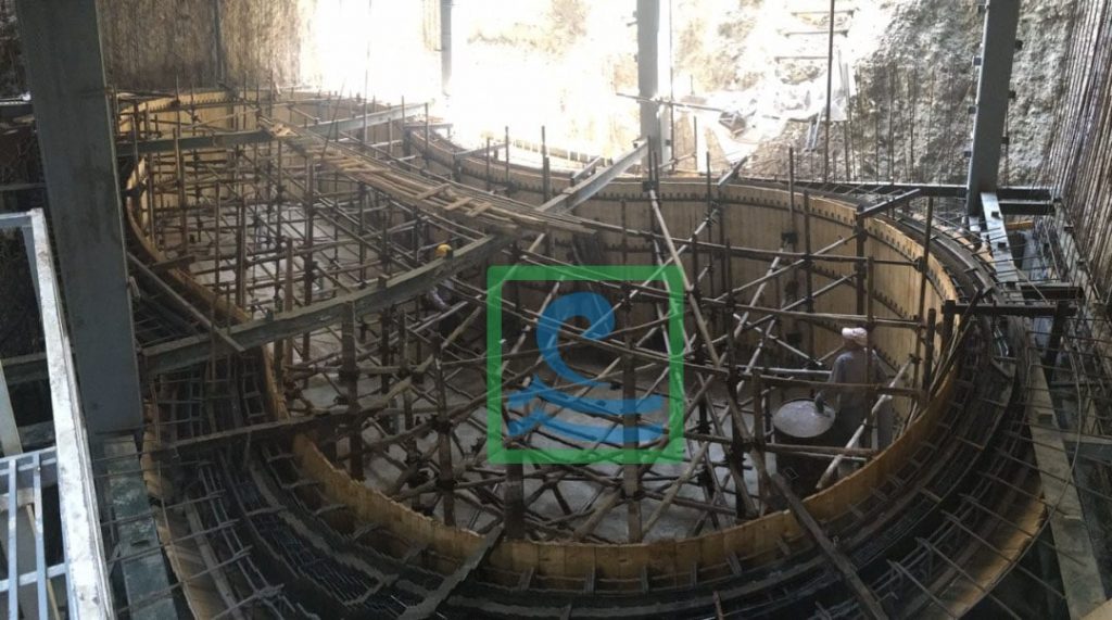ابتدا طرح و مشخصات سازه و سپس کلیه تاسیسات تهیه و سپس نحوه پیوستگی و همپوشانی آنها به یکدیگر بررسی و نهائی گردی. در این طرح از بهترین مصالح و متریال استعلام و انتخاب گردید.همه عوامل تخصصی کنار هم چیدمان شد و پس از ارزیابی های فنی آخر اقدامات اجرائی با تهیه پلن و همچنین دقت در توالی و ظرافت کار شروع شد.با تهیه چوب راش یکدست واطمینان از کیفیت تک به تک آنها و با ایجاد استراکچرفلزی قالب بندی یصورت تسمه ای و دقت در خم های لازم که میتوان نمره بسیار خوبی به آن داد کار در مرحله نصب و اتصال چوب قالب بیرونی حدود 350 قطعه و با بیش از یک هزار پیچ باتمام رسید. کاری بسیار دقیق با محاسبات میلیمتری .همانطوریکه در تصاویر مشخص نوع و سایز میلگرد از بهترین متریال انتخاب و با دقت عالی بافت متراکم میلگرد با نمره عالی و تمهیدات لازم خصوصا در نحوه استفاده از مفتول و دقت لازم در اندازه آن بانجام رسید . تاسیسات مکانیک نیز از بهترین متریال و با دقت لازم نصب و فیکس گردید همچنین درزگیر PVC با دستگاه جوش تخصصی گرین سیل مالزی سر به سر جوش داده و در مرحله بعد گیره های استاندارد به درستی PVC در محل دقیق تثبیت شد. در مرحله بعد نوع بتن با انتخاب برند سیمان اصفهان و طرح اختلاط خاص بتن در دستور کار قرار گرفت و کار در مرحله مهم اختلاط متریال آب بند میکس در بتن GREENSEAL 100 که نوعی پودر پایه سیمان پورتلند با دانه های ظریف کوارتز و مواد شیمیائی خاص می باشد رسید. استفاده از این محصول ضامن آب بندی و طول عمر بتن در مقابل مواد شیمیائی مخرب کلرایدها و سولفادها خواهد بود. (اطلاعات بیشتر را از شرکت فناوران سد آب دریافت کنید) بتن نیز با کیفیت عالی در سه مرحله طراحی، اجرا و کیورینگ در کف و سپس در دیواره ها اجرا شد . آنگونه که در تصویر ملاحظه می فرمایید پس از باز نمودن قالب و آب گیری هیچ گونه نشتی از بتن مشاهده نگردید و استخر مذکور بدون اجرای لایه نازک کاری آماده بهره برداری گردید. دستاورد این ساختار چندین مزیت مهم به شرح ذیل می باشد: