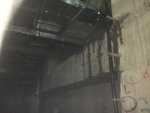 دیوار شمالی سراسری بین محور57-1 با دال بتنی و ارتفاع 17-8 و طول تقریبی 950 متر همجوار با اتوبان احداث گردید. جهت جلوگیری از ورود آب، سراسر دیواره با امولوسینهای قیری آب بندی گردید.(تصاویر ذیل) از آنجائیکه طبق استانداردهای BS8102 انگلستان این روش آسیب پذیر بوده و مناسب سطوح تراز منفی نیست عملیات اجرا شده در آببندی دیوارههای شمالی دچار اشکال گردید. شایان ذکر است طبق تصاویر ذیل این موضوع در سال 1394 طی گزارشی مکتوب از سوی این شرکت تقدیم کارفرمای محترم پروژه گردید.